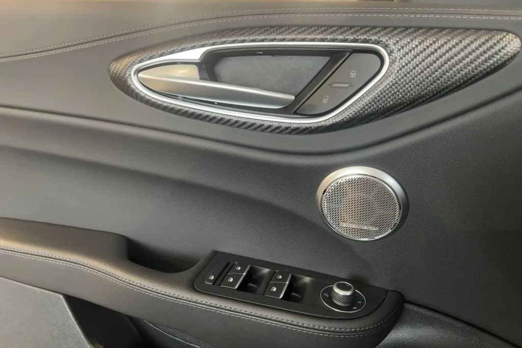 Двигатель — алюминиевый V6 объёмом 2,9 литра с двойным турбонаддувом. Мощность достигает примерно 510 лошадиных сил, крутящий момент — около 600 Н·м, доступный с ≈2 500 об/мин до ~5 000 об/мин. Коробка передач — восьмиступенчатый автомат, привод — полный, система Q4 обеспечивает распределение тяги между осями для максимального сцепления и динамики. Разгон от 0 до 100 км/ч занимает около 3,8 секунды, максимальная скорость — порядка 283-285 км/ч. Объём багажника составляет около 525 литров, что позволяет использовать машину и как повседневный кроссовер. Расход топлива и выбросы соответствуют мощной спецификации: комбинированный расход в районе 9-12 литров на 100 км