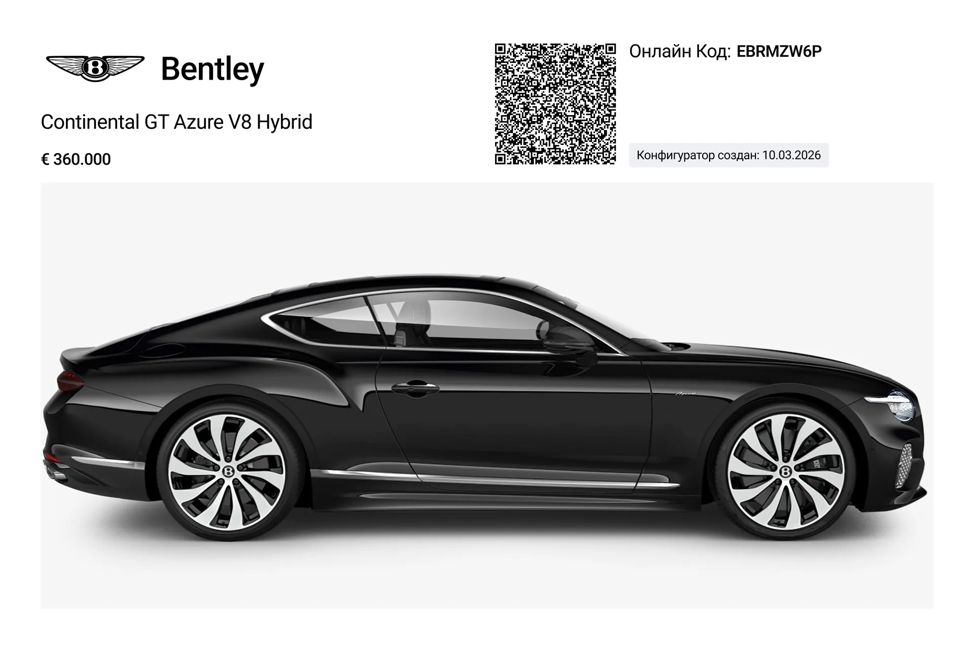 - Модель Continental GT Azure V8 Hybrid