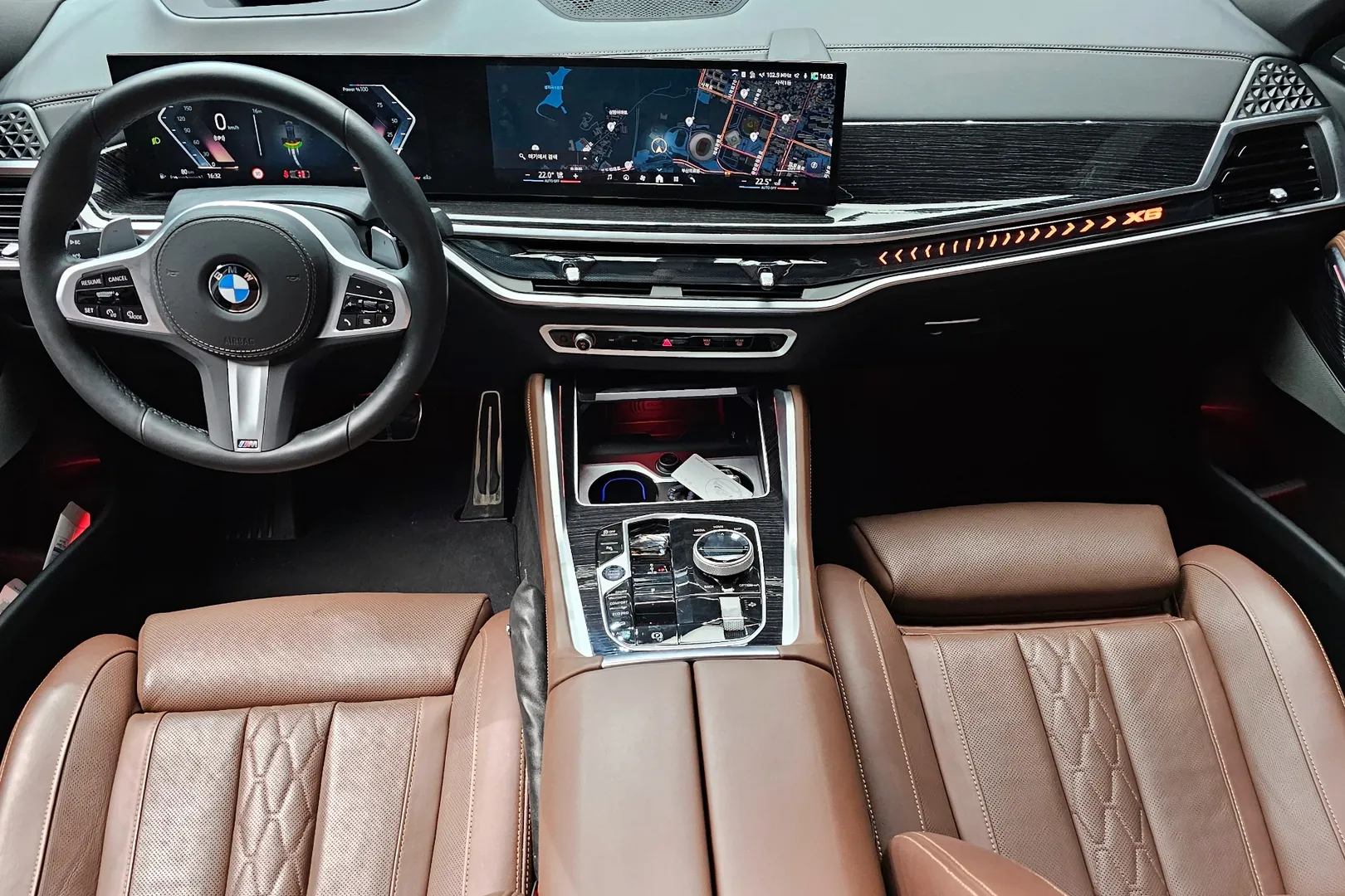 BMW X6 xDrive40i M Sport — премиальный SUV с бензиновым 3,0-литровым рядным шестицилиндровым двигателем и системой mild-hybrid. Мотор развивает около 381 л.с. и 540 Н·м, работает в паре с 8-ступенчатым автоматом и полным приводом xDrive. Разгон до 100 км/ч занимает примерно 5,4–5,5 секунды, максимальная скорость ограничена на уровне 250 км/ч. Средний расход топлива составляет около 8,5–9,9 л/100 км по WLTP. Габариты: длина ~4935 мм, ширина ~2004 мм, высота ~1765 мм, колёсная база ~2975 мм. Объём багажника — примерно 650–1870 л. Пакет M Sport включает спортивный обвес, подвеску и колёса, подчёркивая динамичный характер модели.