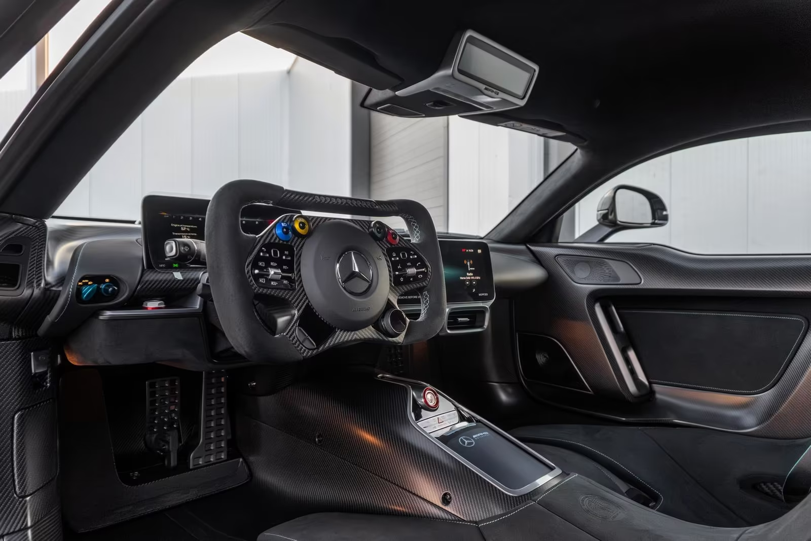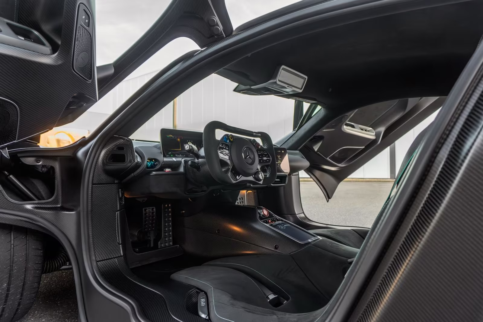 Mercedes-AMG ONE — это гиперкар с гибридной силовой установкой, напрямую заимствованной из технологий Формулы-1, сочетающий экстремальную динамику и передовые инженерные решения. Под капотом установлена гибридная система на базе 1.6-литрового турбированного V6 и четырёх электродвигателей, развивающая суммарно около 1063 л.с. (≈782 кВт). Разгон до 100 км/ч занимает около 2.9 секунды, до 200 км/ч — около 7.0 секунды, а максимальная скорость достигает примерно 352 км/ч. Автомобиль оснащён 8-ступенчатой роботизированной коробкой передач и системой полного привода, обеспечивающей максимальное сцепление и трековую эффективность.