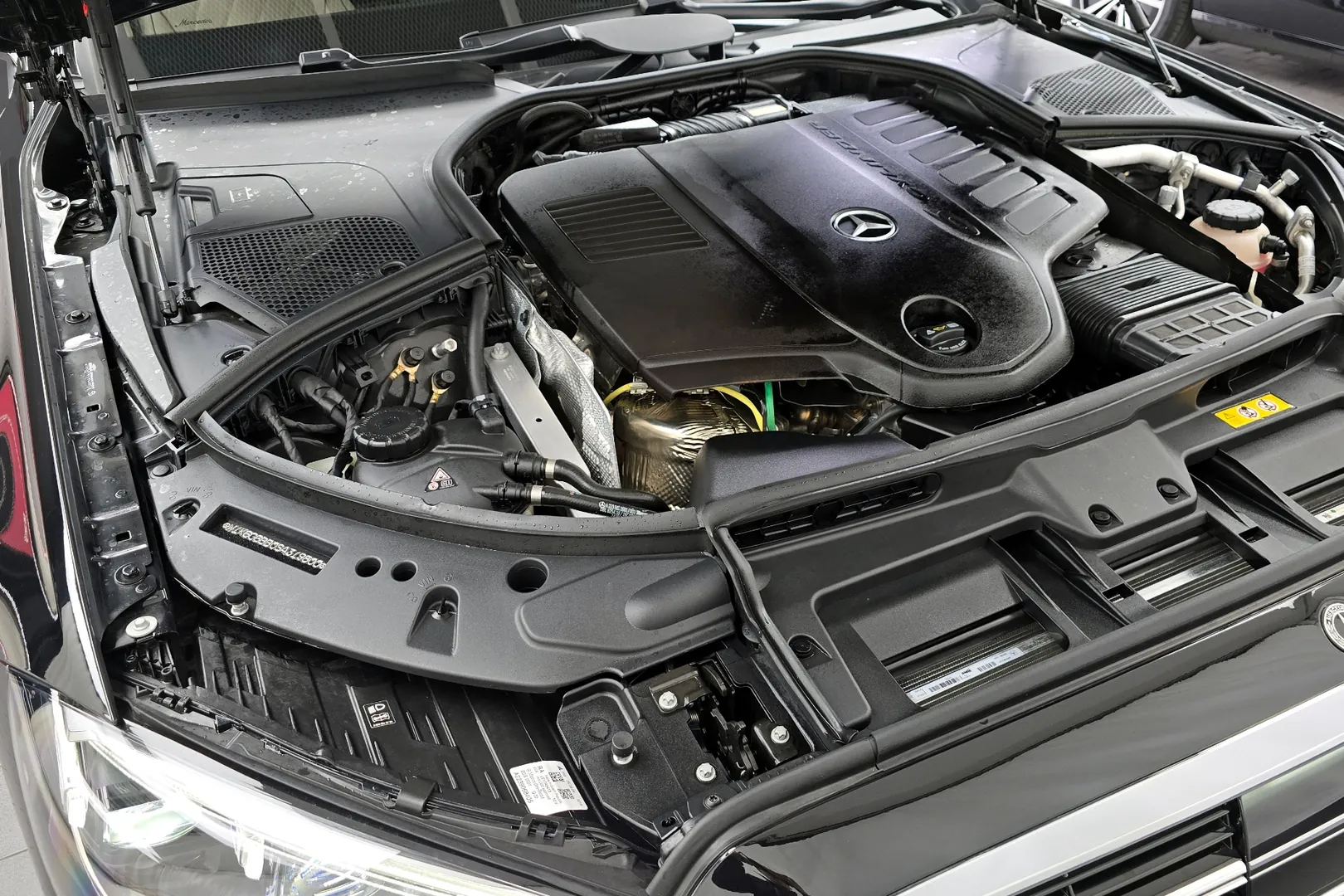 Mercedes-Benz S450 4MATIC оснащён рядным шестицилиндровым бензиновым двигателем объёмом 2,999 см³ (3,0 л) с технологией EQ Boost и мягкой гибридизацией. Максимальная мощность составляет около 367 л. с. (270 кВт) при 5 500-6 100 об/мин, крутящий момент — 500 Н·м в диапазоне примерно 1 600-4 500 об/мин. Коробка передач — девятиступенчатый автомат 9G-TRONIC, привод постоянный полный (4MATIC). Разгон от 0 до 100 км/ч занимает примерно 5,1-5,3 секунды, максимальная скорость ограничена на уровне около 250 км/ч. Габариты автомобиля: длина примерно 5 300-5 330 мм, ширина около 1 937-1 940 мм, высота около 1 503 мм, база около 3 216 мм. Расход топлива комбинированный ориентировочно около 8,9 л/100 км, выброс CO₂ — порядка 200-203 г/км, объём топливного бака около 76 литров.
