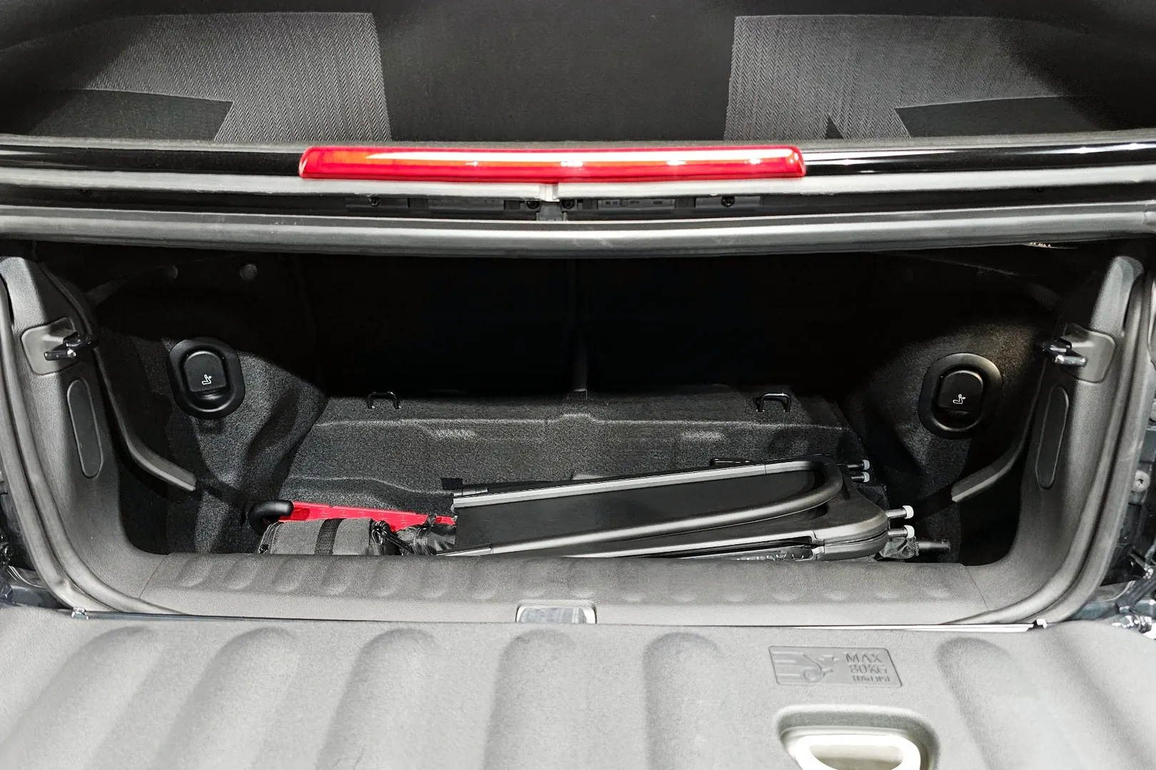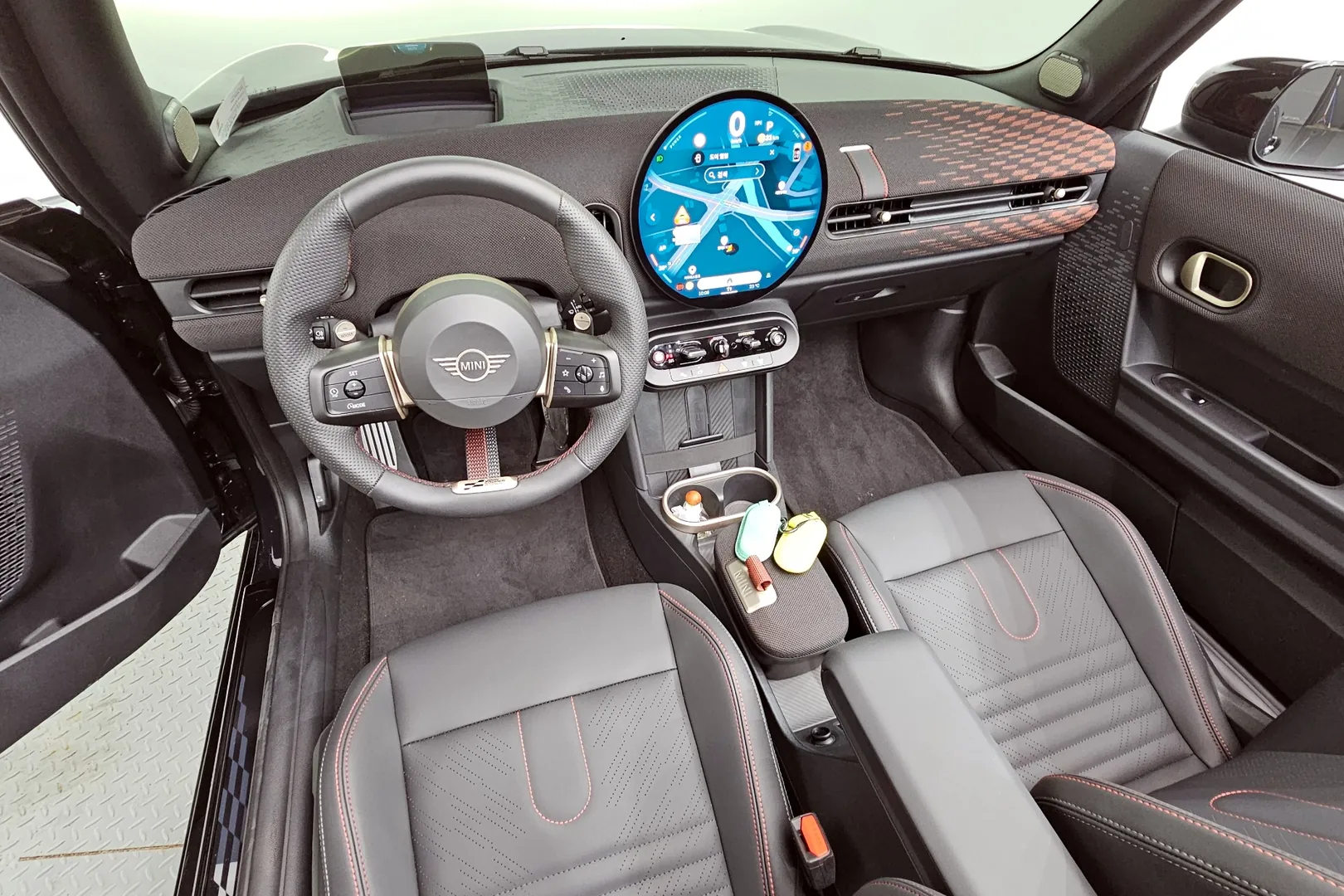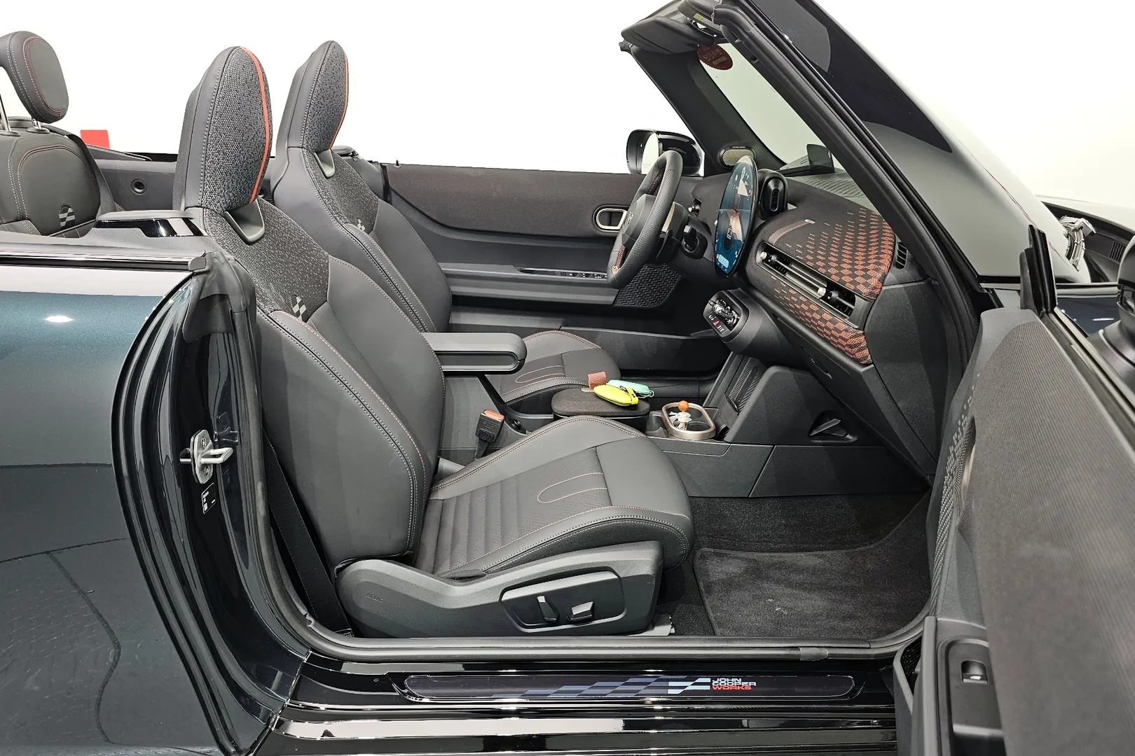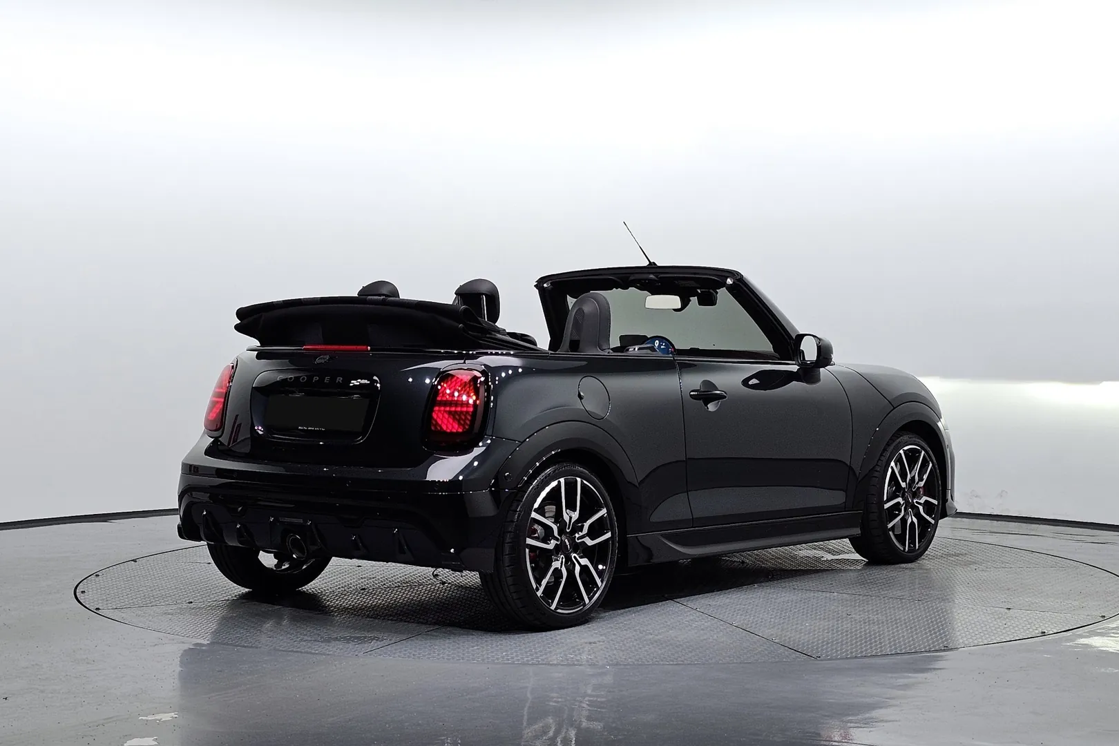 Mini Cooper JCW Convertible оснащён 2,0-литровым бензиновым турбированным четырёхцилиндровым двигателем мощностью около 231 лошадиных сил и крутящим моментом примерно 380 Н·м. Разгон от 0 до 100 км/ч занимает около 6,4 секунд, а максимальная скорость достигает примерно 245–250 км/ч. Коробка передач — 7-ступенчатый автомат с двойным сцеплением, обеспечивающий быстрые и плавные переключения.