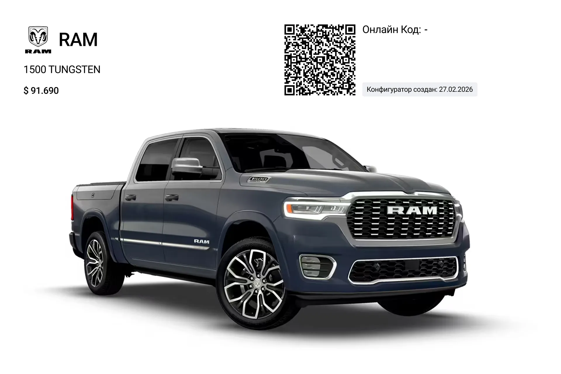 RAM 1500 TUNGSTEN 2026 3.0 л 540 л.с. Бензин 0 км
